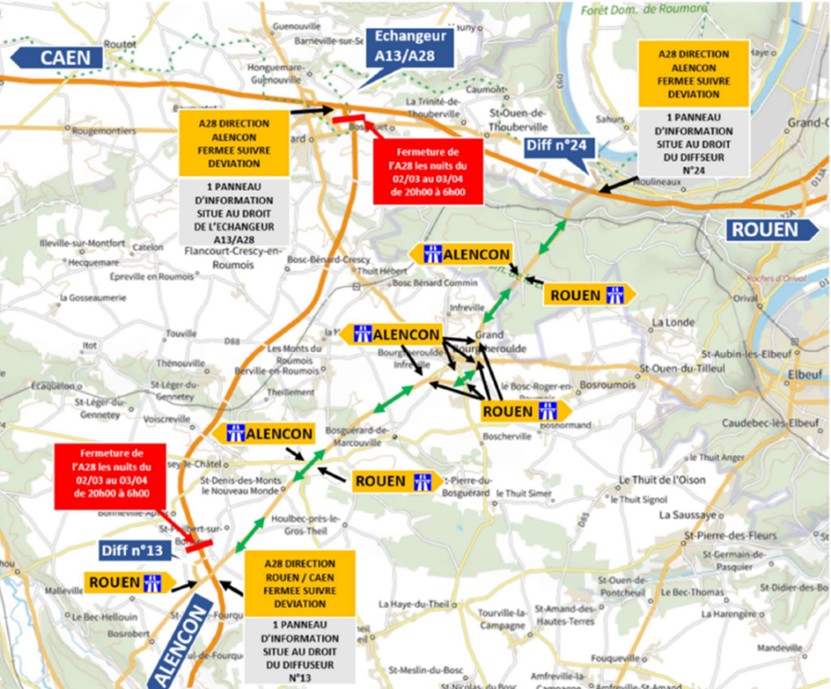 The Autoroute de Liaison Seine Sarthe company, ALiS, is carrying out maintenance and safety work on the section between the A28 and A13 interchange in both directions.