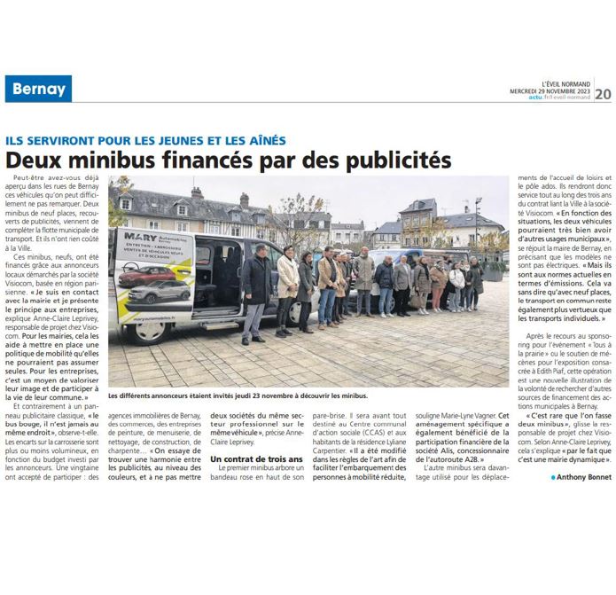 Deux minibus de 9 places, financés par des annonceurs locaux, ont...